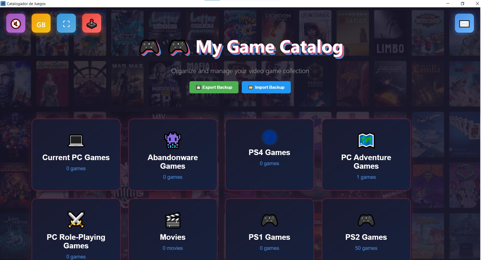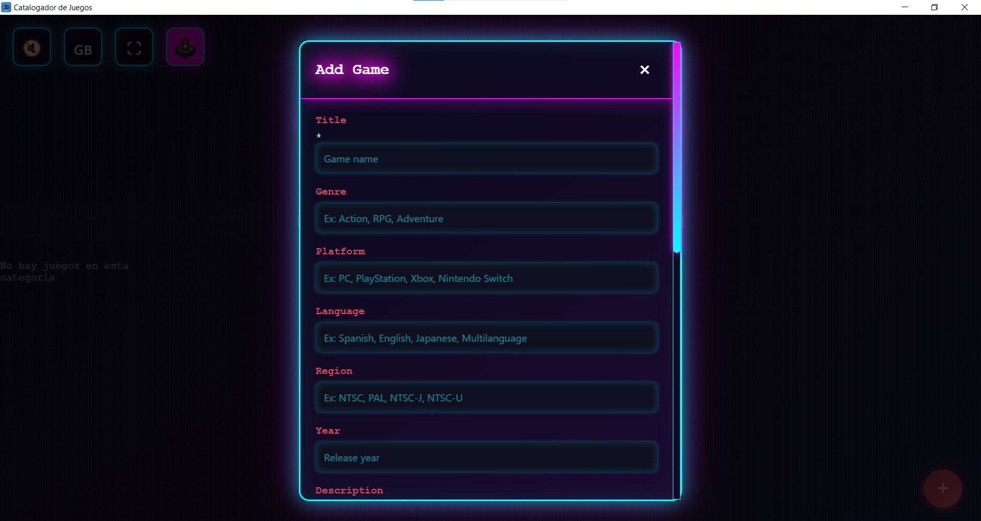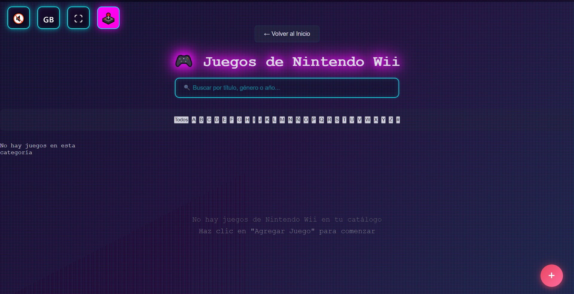 1. **Añadir un juego**: Haz clic en el botón "+" de cualquier categoría